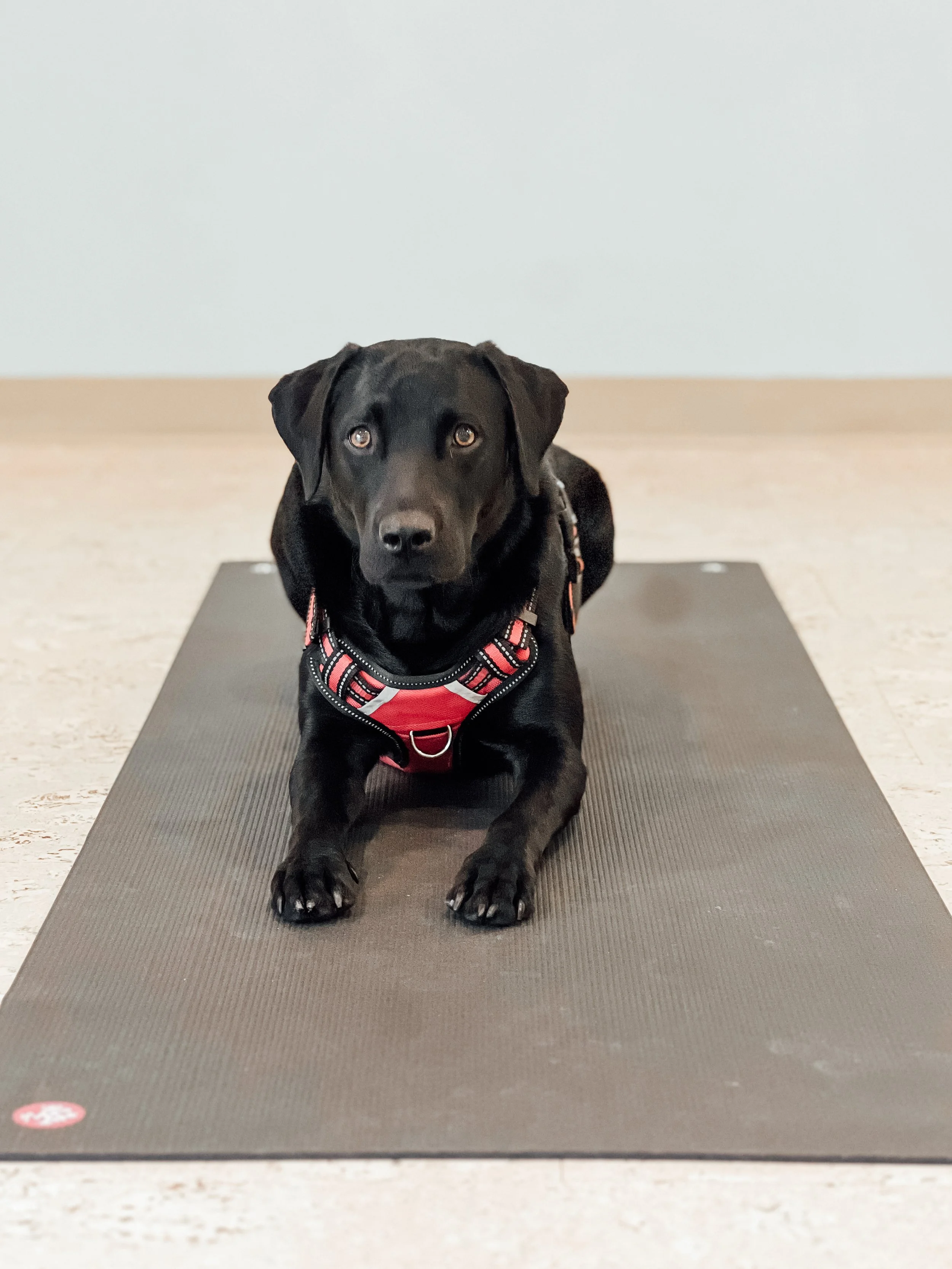 Belle, our beloved American Black Lab, joined the Soul Society Yoga team in 2024 after completing her training with American K9 as a Yoga Therapy Dog. While “Yoga Therapy Dog” is not an official service dog certification, Belle has specialized training in emotional support and is continuing her training to assist students with balance challenges or those who may need a little help getting up and down.