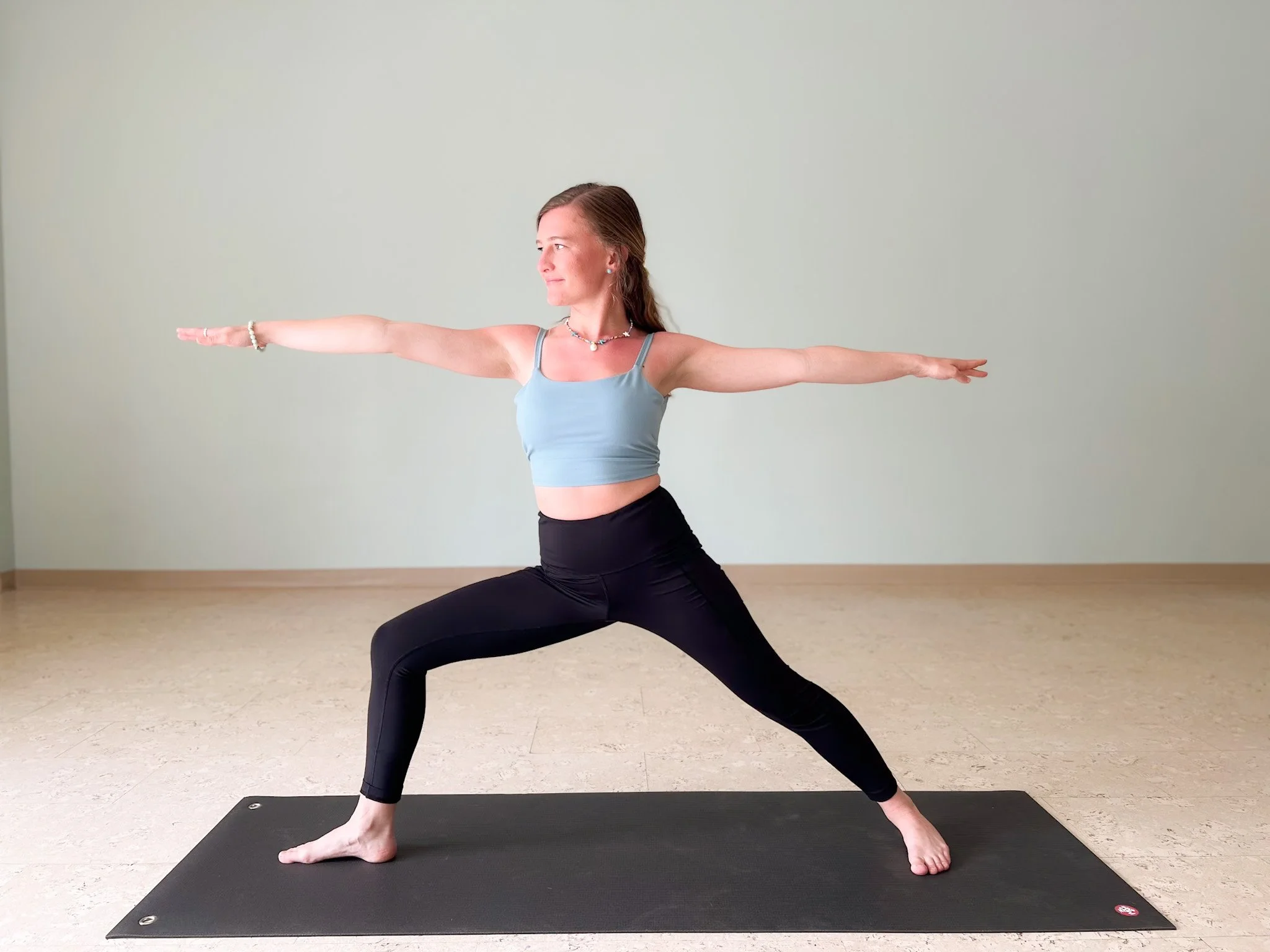 Sarah in Warrior II.